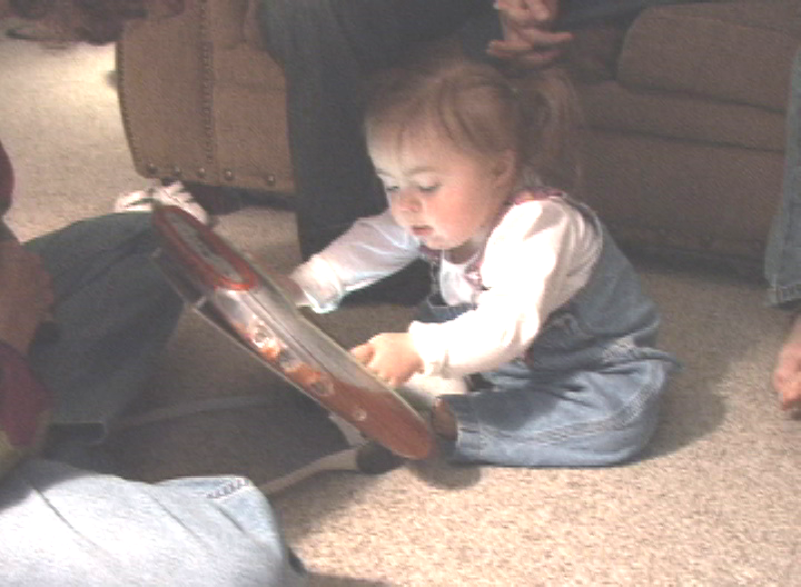 - In the clip, she points to the picture symbol of the Elmo book to ask for the book.