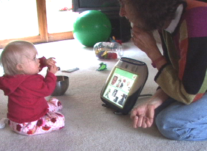 - Finally, Genevieve chooses the symbol for "laugh," and Janice tickles her to make her laugh.