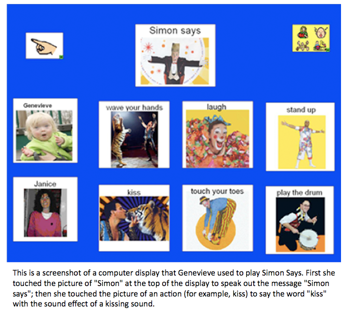 Here is a video of Genevieve using the assistive technology to play Simon Says with Janice.