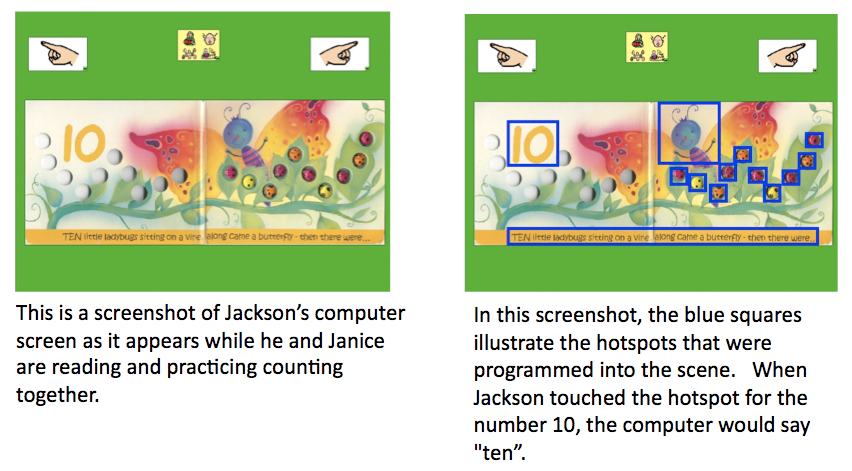 - When your child touches the hotspot, the computer speaks the word or produces the sound effect.