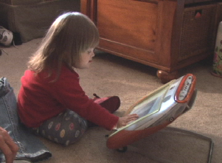 Here is a video of Genevieve using assistive technology to sing, "Wheels on the Bus."