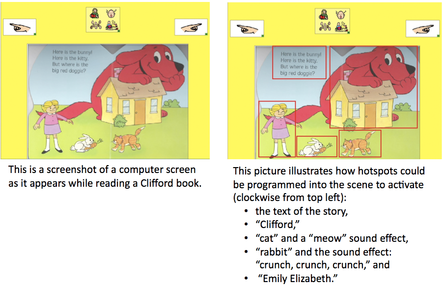 - When your child touches the hotspot, the computer speaks the word or produces the sound effect.