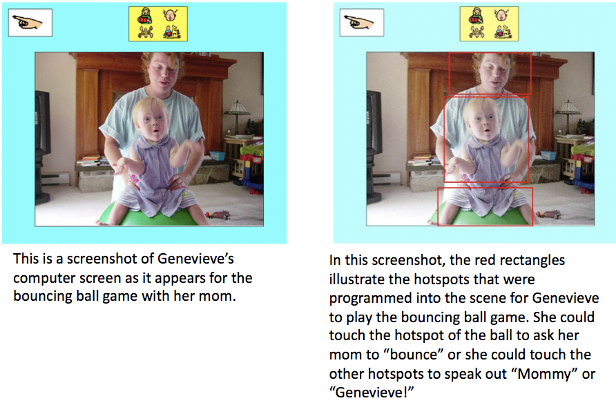 Here is a video of Genevieve using the assistive technology to play Simon Says with Janice.